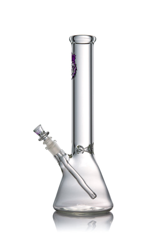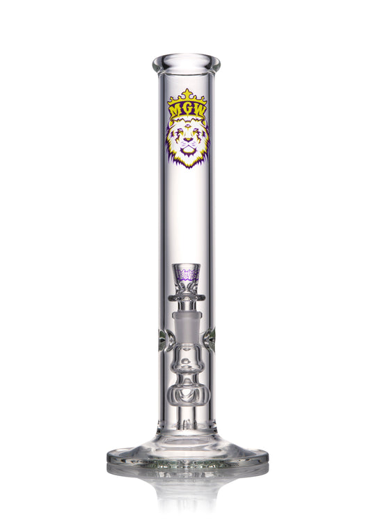 Manifest Glassworks 12" Stemless Diffused Fixed Downstem Tube with Purple and Yellow Logo