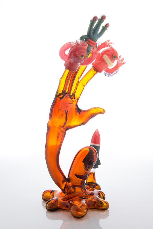 Alien Finger Puppet Hand Vapor Bubbler and Dome Holder Collaboration by Joe Peters, Robert Mickelsen, and Elbo