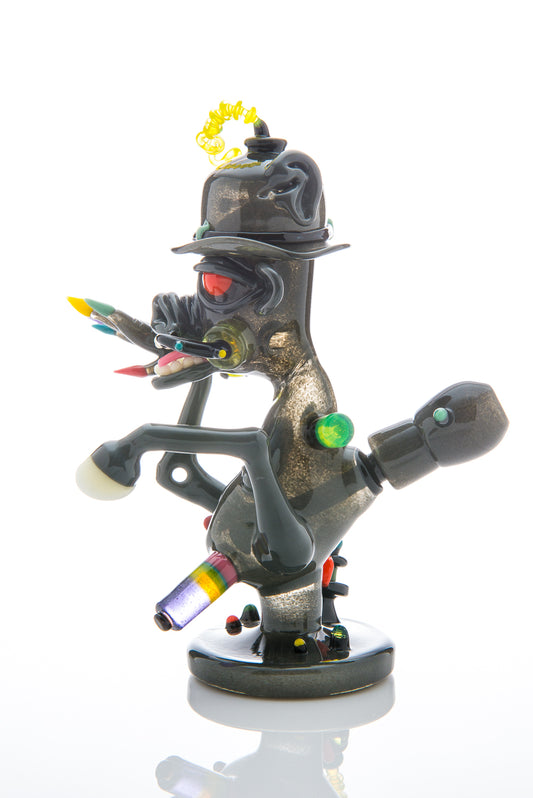 Snic Barnes draws inspiration from technological advancement, urban decay, and natural environments. Having gained much acclaim for his electro-forming techniques as a mixed media pipe-maker, his recent body of work focuses back to his roots in the glass medium. Incorporating new color pallets, transparent glass blending techniques, and color experiments into his new body of work, the artist has found himself reinvigorated through showcasing the diversity in his skill sets.