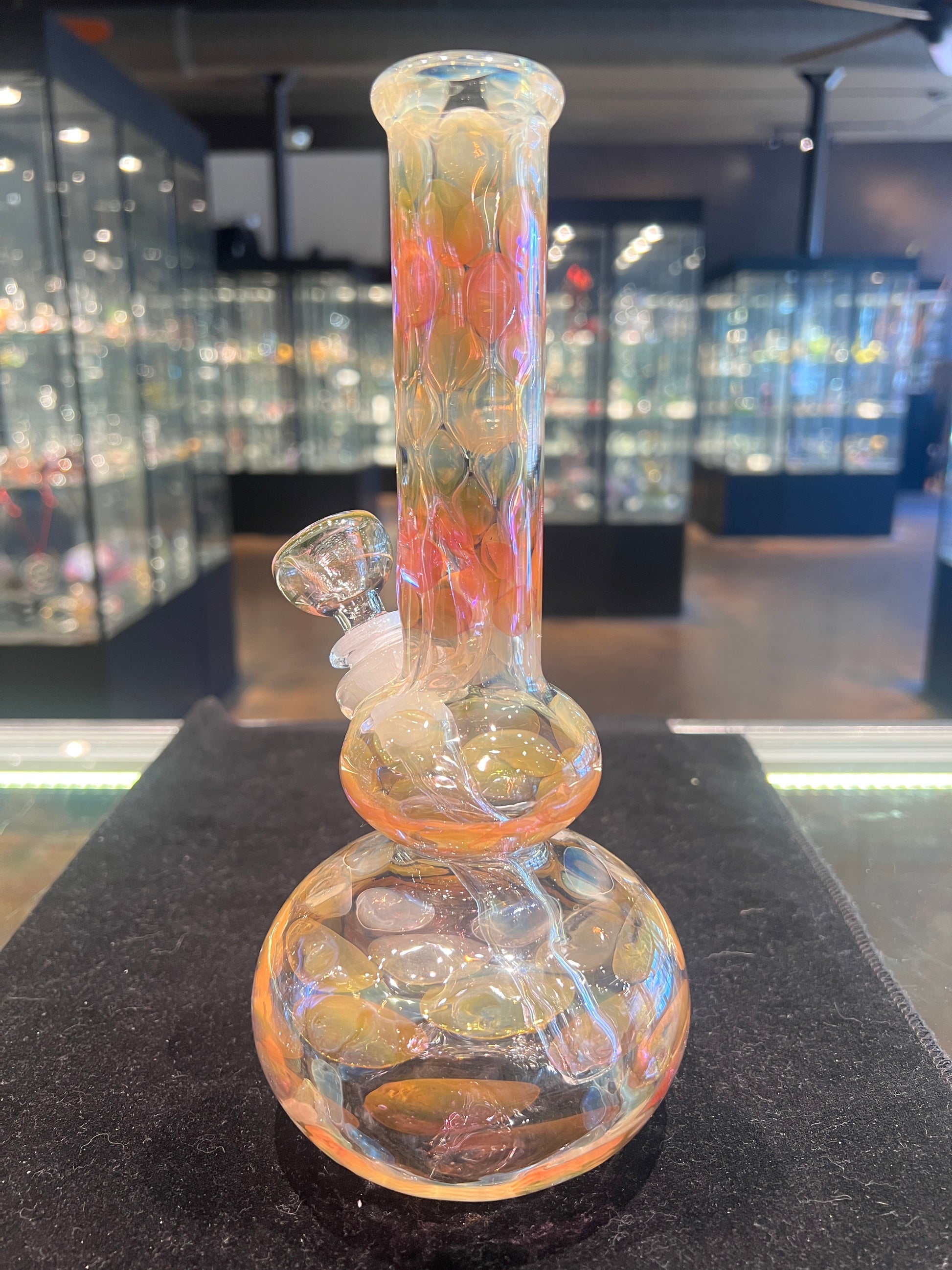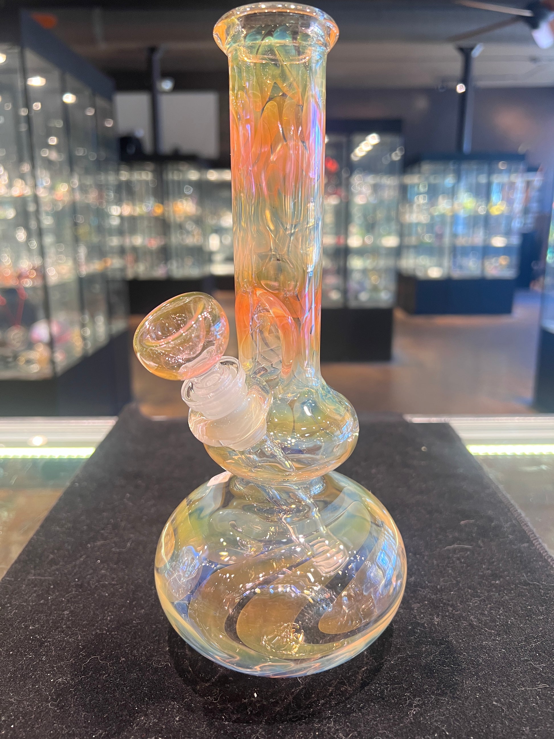 Beautiful, Classic, American made full fume glass on glass tube. Includes removable Low profile downstem and matching, fumed 14mm bowl.