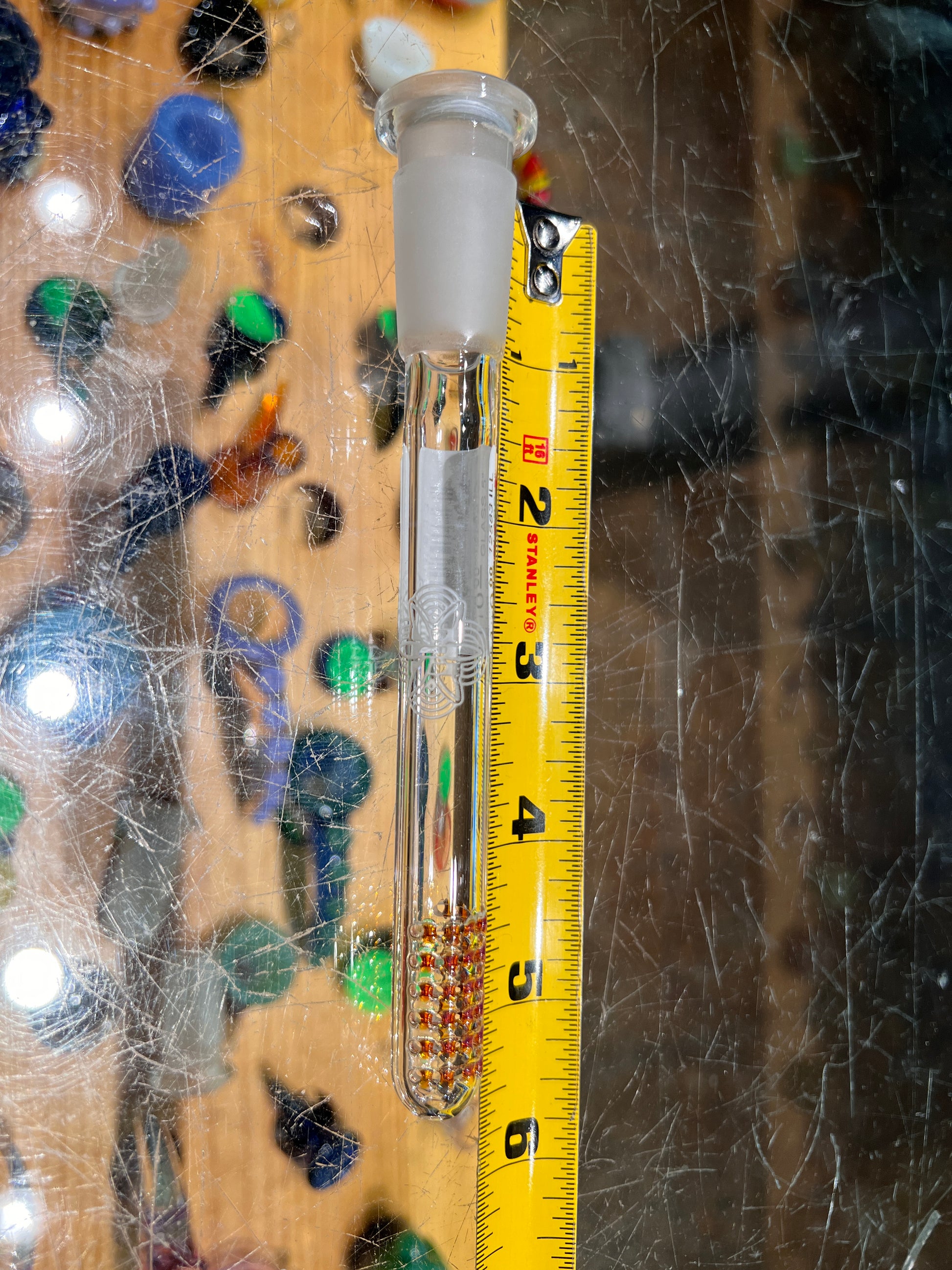 Replacement Diffuser for your Ill Glass Tube or an excellent upgrade for any tube that uses an 18MM downstem! Hybrid design includes both a fine grid pattern that works to create a ton of tiny bubbles during your pull (smaller bubbles = more surface area = improved filtration), as well as a large "escape hole" on the bottom to allow for effortless clearing while letting any snap through material to pass right through.