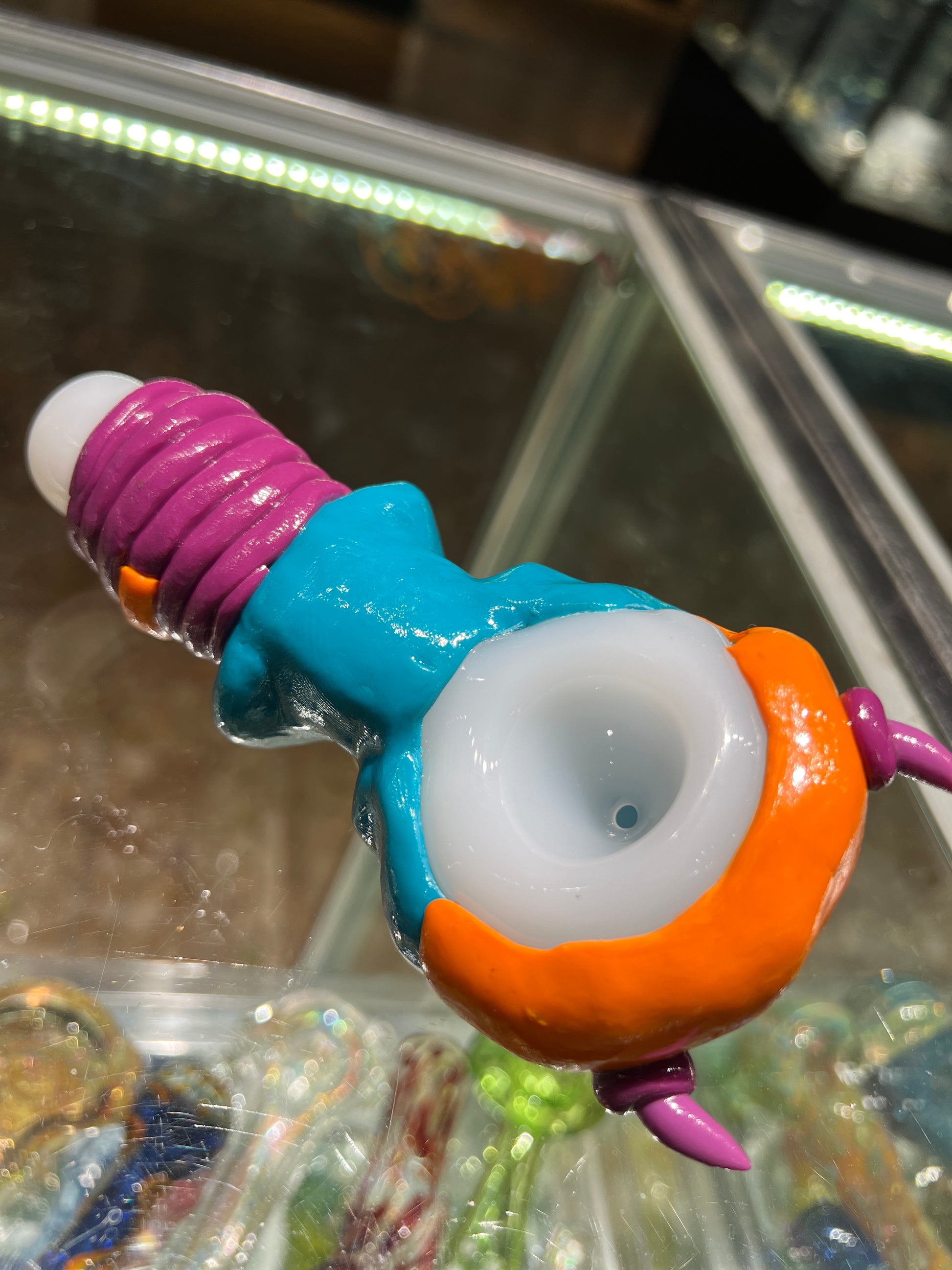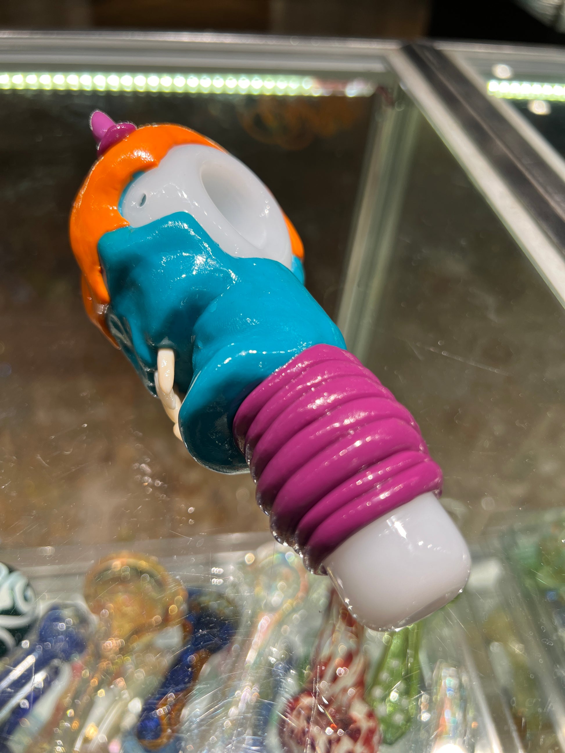 Large Glass Spoon Pipe with Los Dias De Los Muertos Sculpted Skull Design #2